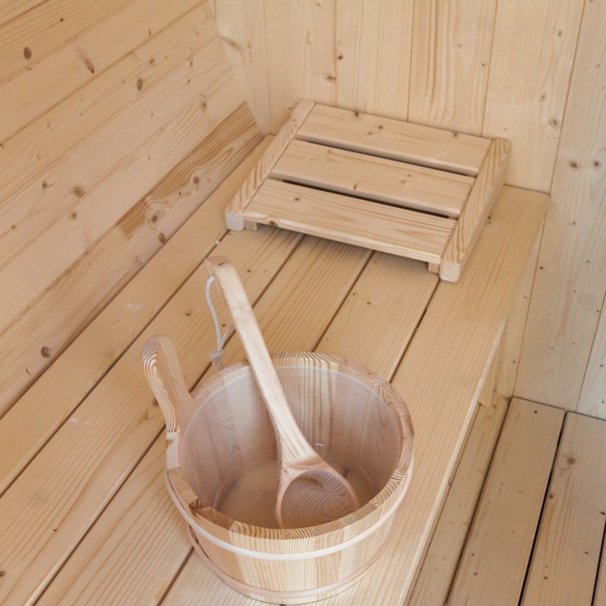 - Găleată și polonic din lemn pentru turnarea apei